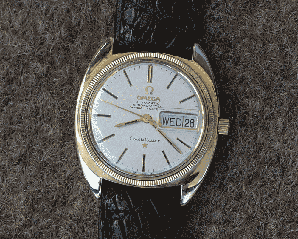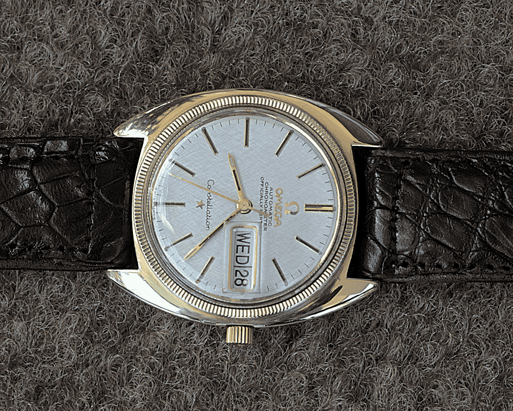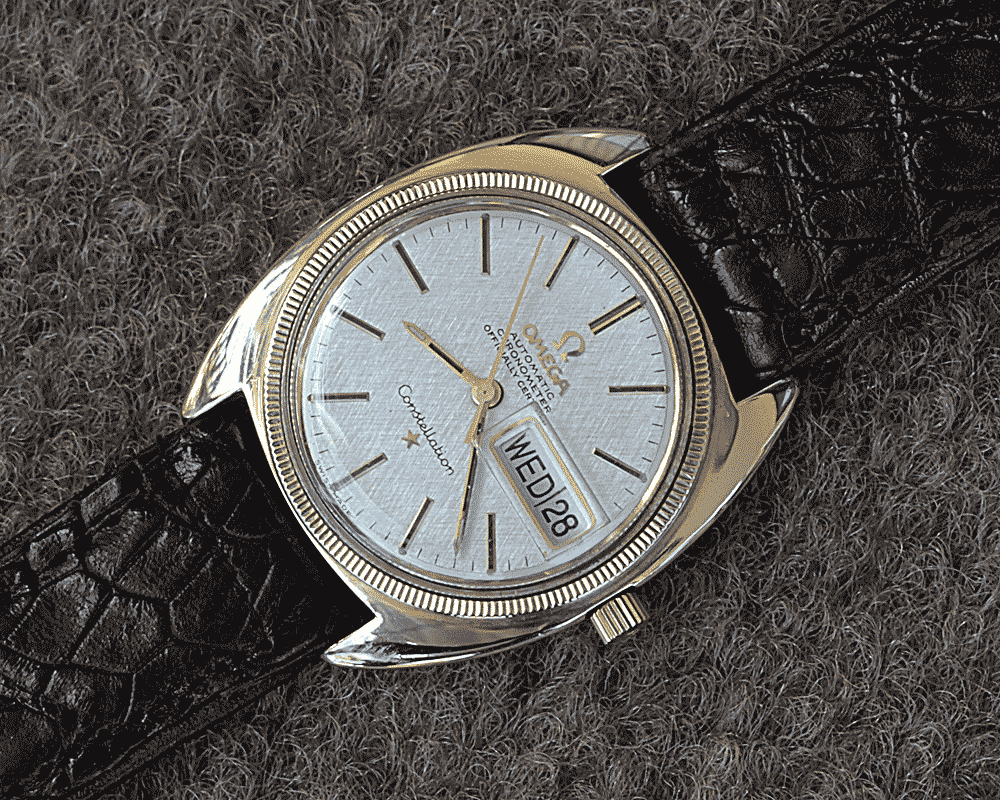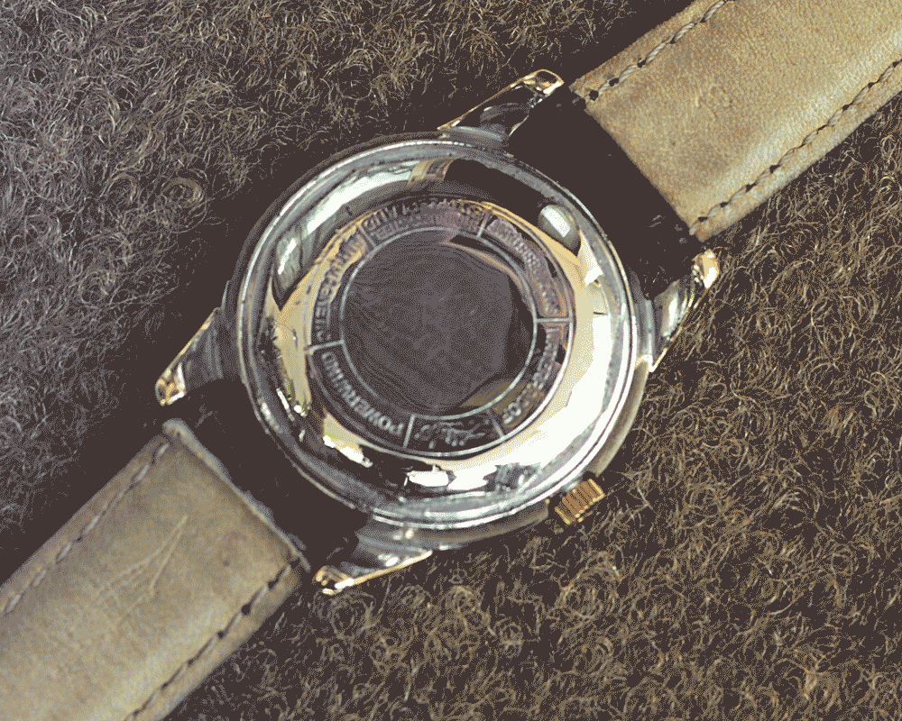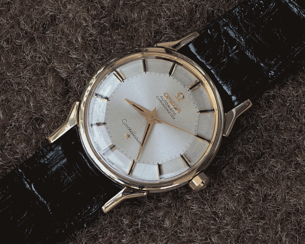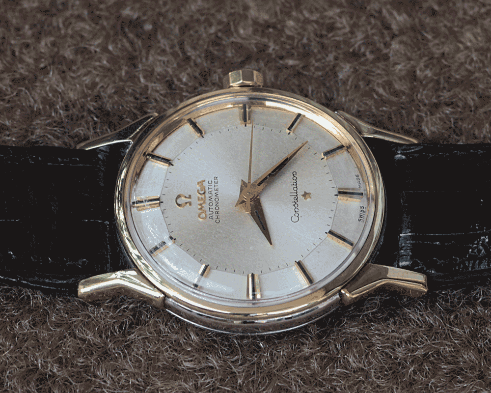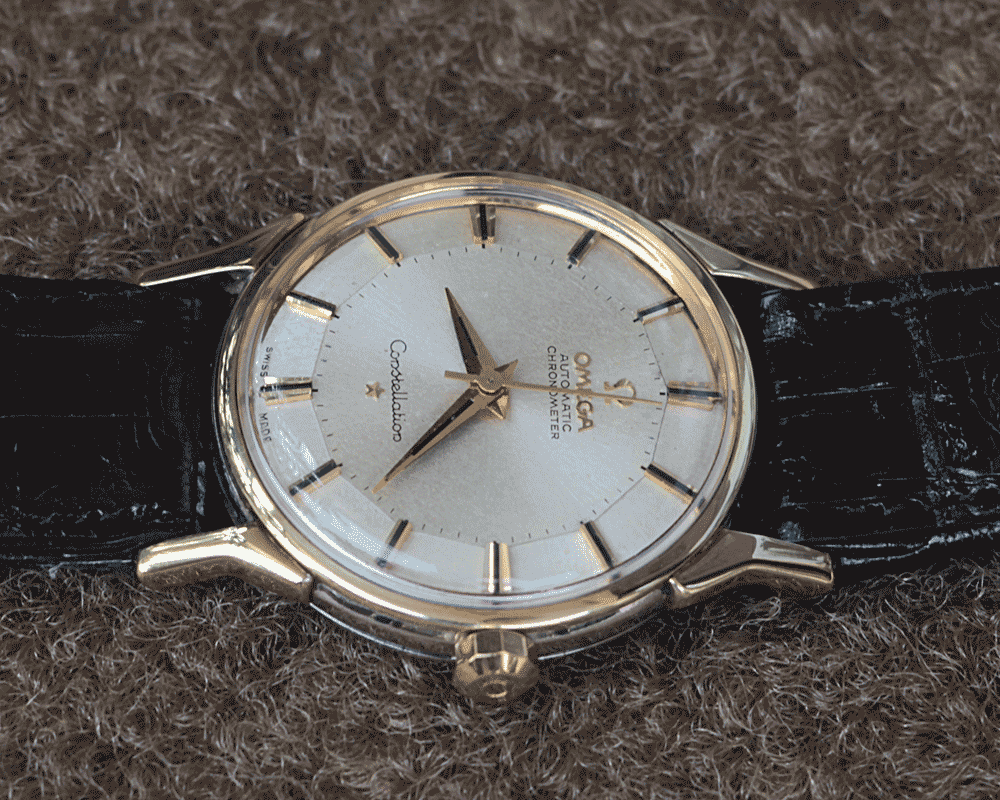 หน้าปัทม์สีเงินหลักเลขอารบิคทอง สายเดิมเข็มขัดเดิม