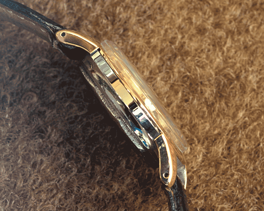 ตัวเรือนทองคำ 18k ขนาดตัวเรือน 34 มิลครึ่ง(ไม่รวมเม็ดมะยม)