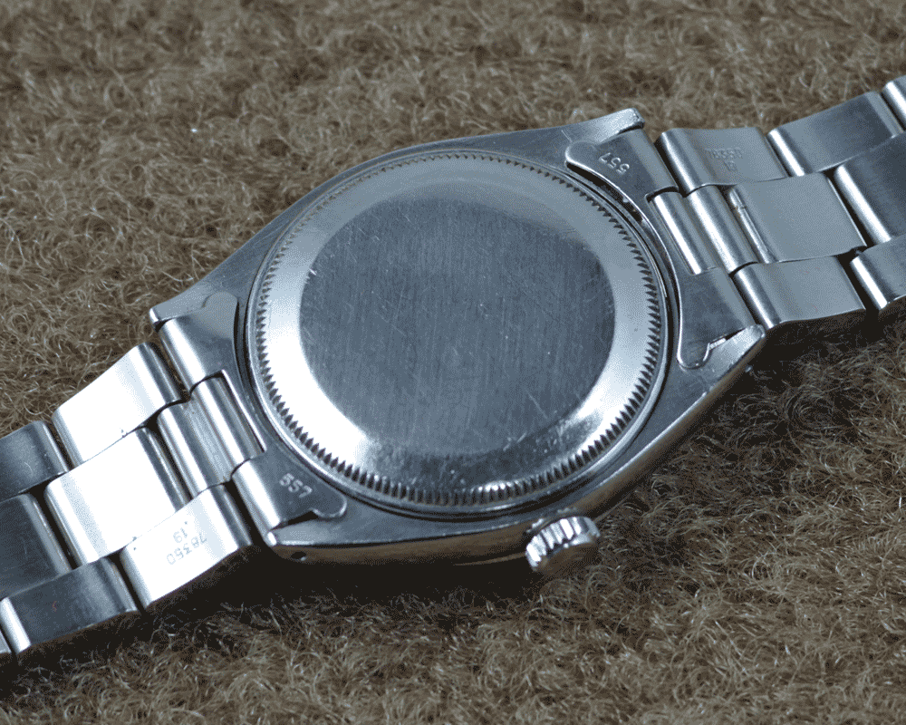 ขอบทองคำขาว หน้าปัทม์เดิมๆ สายสแตนเลสแท้ยาวประมาณ 6 นิ้วครึ่ง