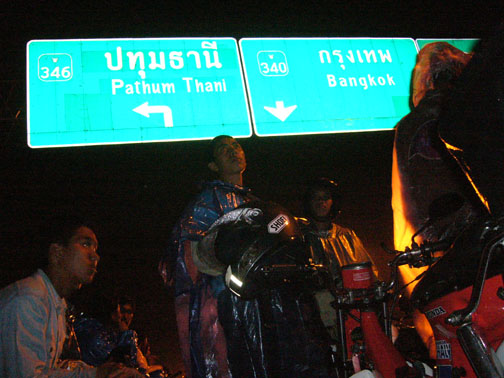 ท่าทางฝนจะตกนะครับเนี่ยใส่เสื้อกันฝนกันหมดเลย (แต่ต้นดูแล้วถ้าทางฝนจะตกไม่ค่อยหนักเท่าไหร่นะครับ ถ้าฝนตกหนักป่านนี้ตึกพังทั้งจังหวัดนนทบุรีไปแย้ว )