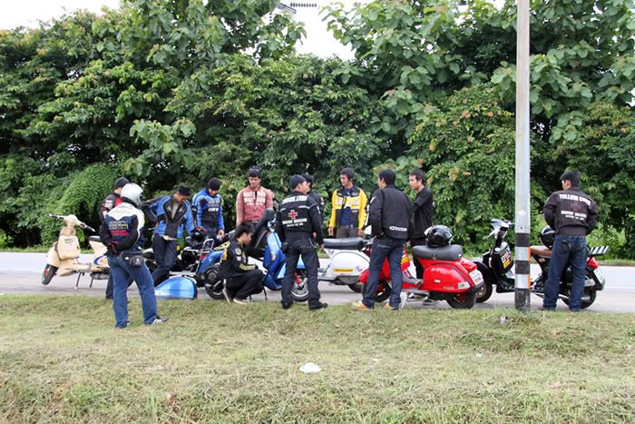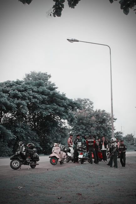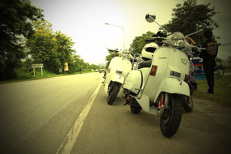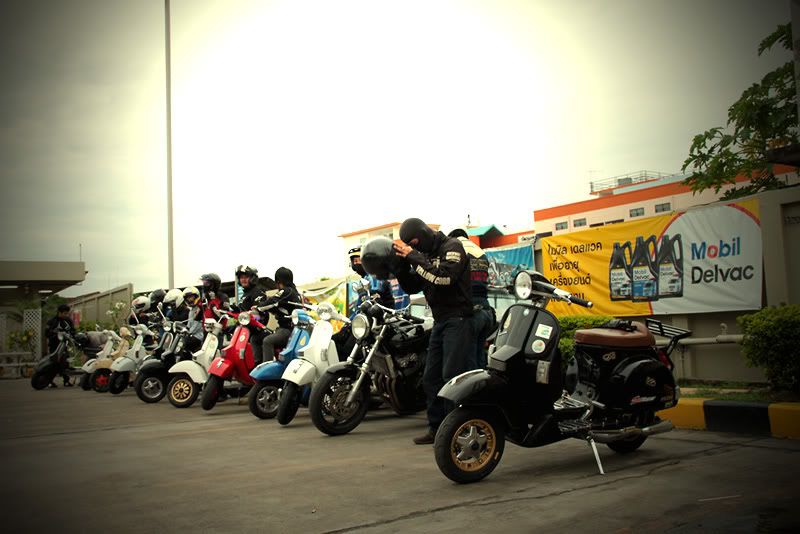จุดรวมพลปั๊มเอสโซ่ครับ งานนี้ไปvespa15 คัน PX only super4อีกคัน vespaตามไปอีก1คัน นัดหกโมงเช้าออกเจ็ดโมงกว่าอิอิ