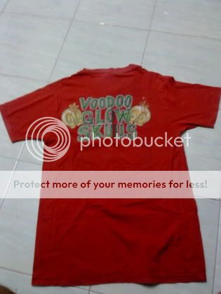 4.เสื้อวง Voodoo glow skull สีแดง ไซส์ M มีลายสกรีนหน้า-หลัง มีรูเท่ามดตรงชายเสื้อ ขายในราคา 300 บาท รวมส่งครับ