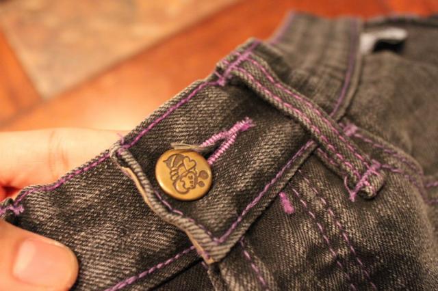 เย็บด้วยด้ายสีม่วง สวยๆเลยครับ ข้างหลังมีลายเสือตรงกระเป๋าหลัง