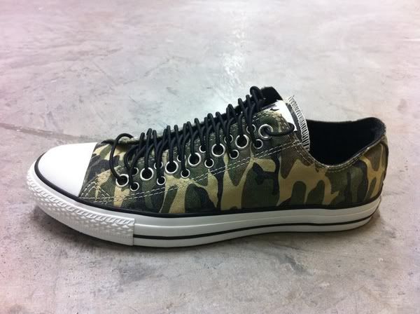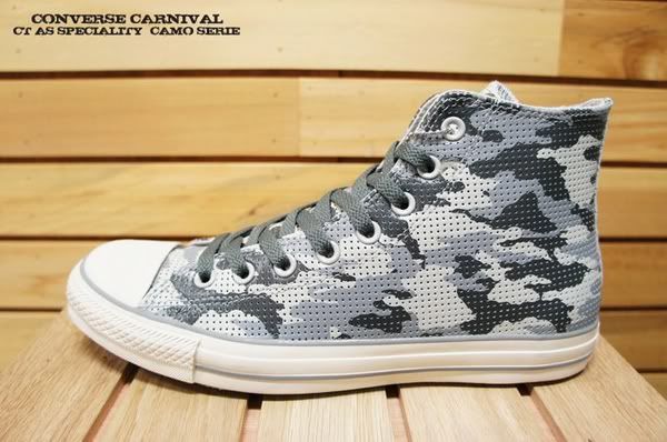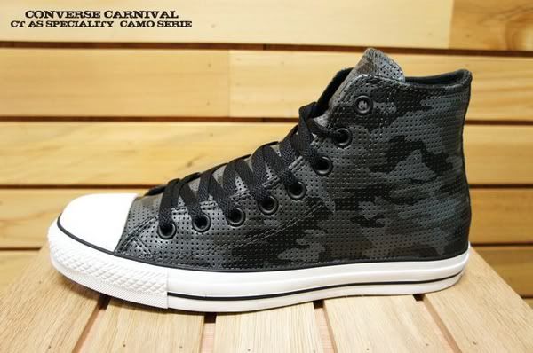 มาแล้วครับ collection ใหม่ประจำเดือนเมษายนกับ "CAMO" หรือลายพรางนั่นเอง หลังจากที่กระแส camo ใน brand street fashion ต่างๆกำลังมาเลยทีเดียว CONVERSE หยิบเอาหนังคุณภาพเยี่ยมมาเจาะรูและพิมพ์ล?าย CAMO ลงไป โดยลาย CAMO ที่เลือกใช้เป็นลักษณะ dark camo สีจะออกแนว dark และเข้มครับ ทำให้สีออกมาในโทนดำ ใส่ง่าย เท่ และ ลายสวยมากๆครับ คู่นี้เป็น collection ล่าสุดของปี 2011 เลยโดยบริเวณพื้นรองเท้าด้านในก็จะพิมพ์ลา?ย camo ลงไปด้วยเช่นกันครับ รุ่นนี้สวยจริงๆครับ มาลองได้เลยที่ร้านครับ