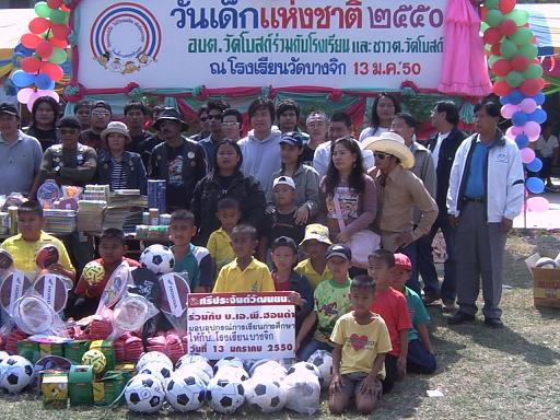 ขนมที่นำมาแจกให้เด็กๆ และทางศรีประจันต์วัฒนยนต์ (เขียนถูกเปล่าเนี้ย) ได้นำอุปกรณ์การเรียนและอุปกรณ์การกีฬามามอบให้โรงเร ียนด้วย (เมื่อ 24 ปีที่แล้ว บ้านผมได้ซื้อรถคันที่ 2 คือเจ้า Gl-x สีแดง กับร้านศรีประจันต์วัฒนยนต์ครับ แล้วอีกปีถัดมาก็คันที่ 3 คือ Gl-100 และเมื่อปี 2547 ที่ผ่านมาก็ซื้ออีกคันที่ 4 เป็น เวฟ 125r และพอปี 2548 ก็ซื้อคันที่ 5 เป็น เวฟ Z อืมแปลกดีแฮะ ส่วนอีก 4 คันที่เหลือซื้อจากที่อื่นครับ)