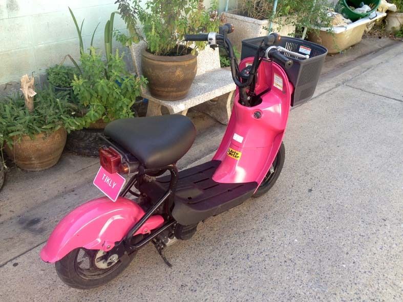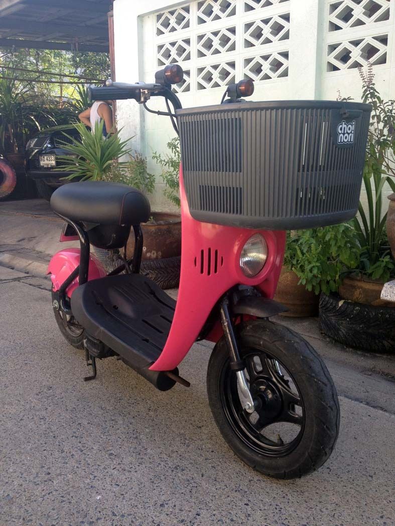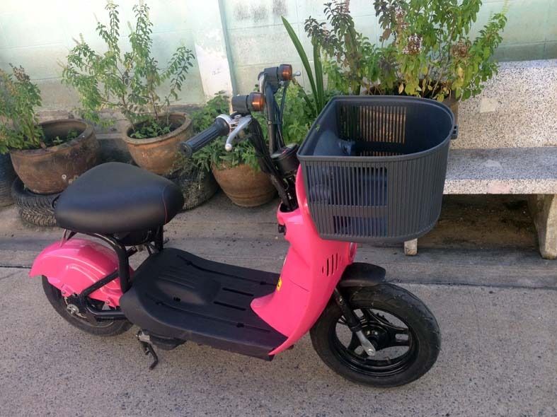 รถ 50 cc เครื่องยนต์ 4 จังหวะ สีชมพู มีตระกร้าหน้า