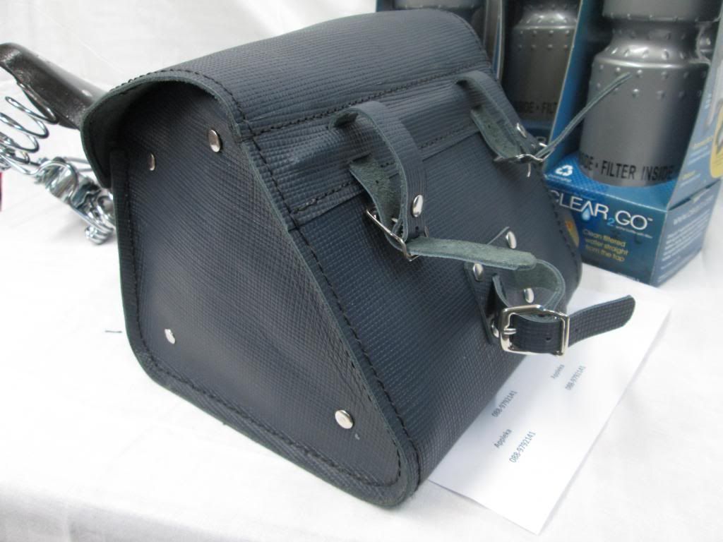 1. กระเป๋าหนังหลังอานจักรยาน หนังแท้ แฮนด์เมด สีน้ำเงินอมม่วง ขนาด 7" * 8" ยังไม่เคยใช้งาน 990.- ส่งลงทะเบียน