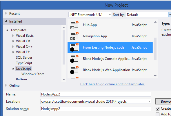 ผลออกมาเป็น Node.js Tools for Visual Studio ที่ใช้ได้กับทั้ง Visual Studio 2012 และ 2013 ทำให้ Visual Studio เหมาะกับการเขียนโค้ด Node.js มากขึ้น ทั้งการแก้ไข, การช่วยคาดเดา Intellisense, การทำ profiling/debugging รวมถึงการเขียน Node.js เพื่อใช้กับ Azure หรือบริการกลุ่มเมฆอื่นๆ ด้วย