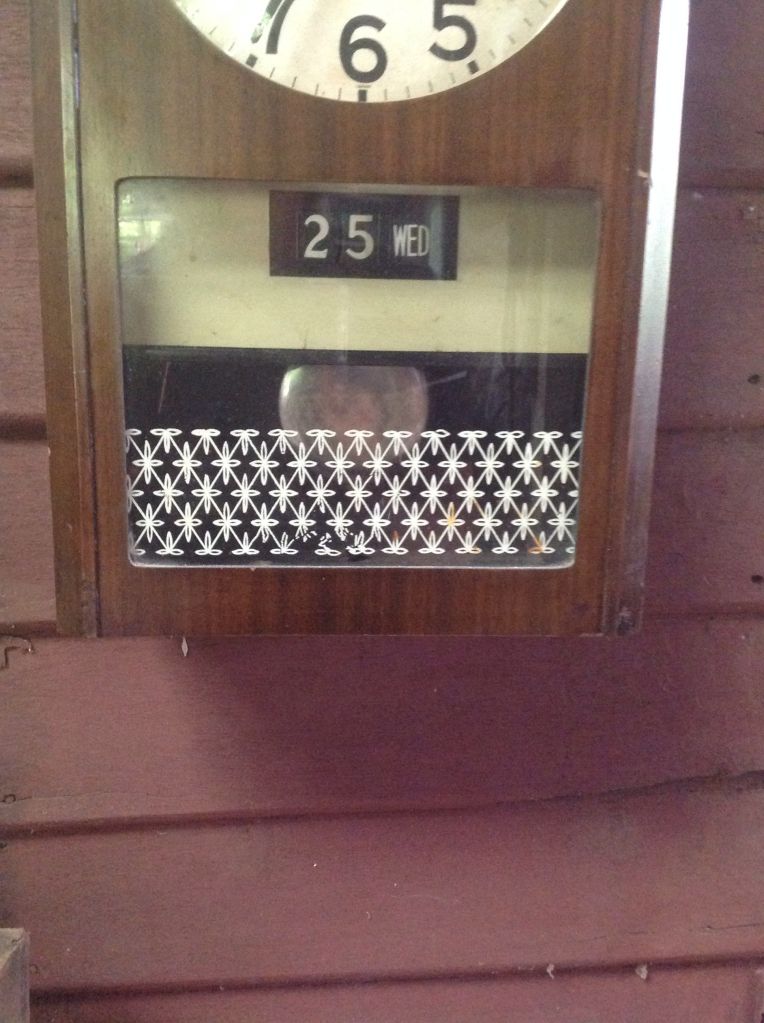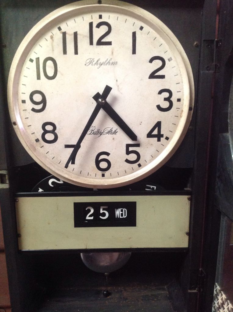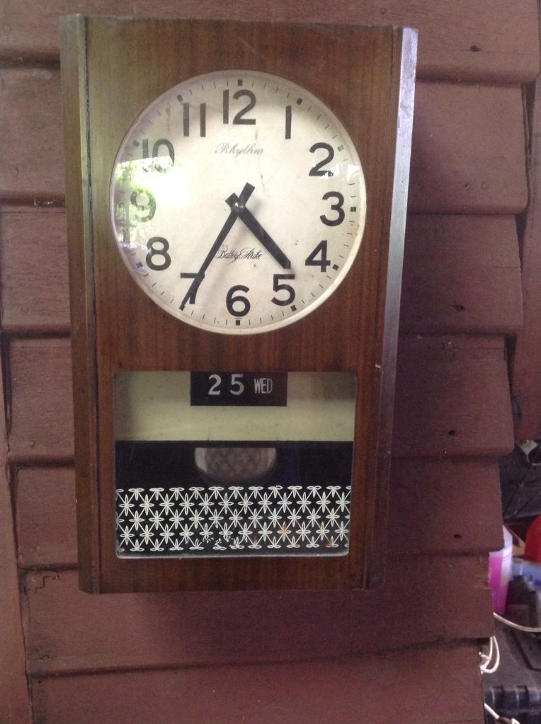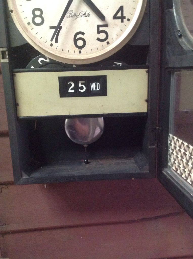 นาฬิกาแแขวน มีวันที่ ใส่ถ่าน มีตุ้มแขว่งและตีบอกชั่วโมง เหมือนนาฬิกาไขลาน สภาพดี ใช้งานได้ 2500พร้อมส่ง